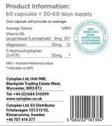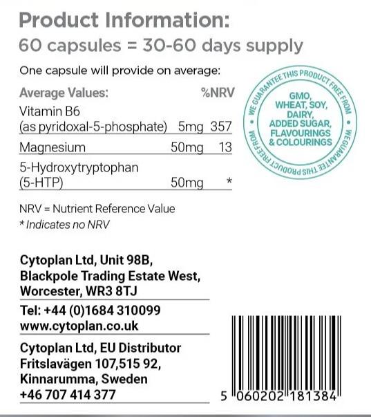 5HTP is related to serotonin, a neurotransmitter which affects mood and sleep. It is not recommended for children, during pregnancy or breastfeeding, or when taking SSRI and certain other medications. It may also not be suitable for certain health conditions. Talk to your GP or practitioner, or speak to one of our Nutritional Therapists to make sure that 5HTP is right for you.